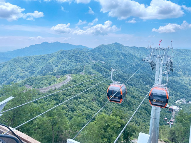 景區工作人員介紹,新纜車采用北京冬奧會國家高山滑雪中心進口索道設備廠商的先進設備,更安全,更便捷,更快速。纜車運行速度顯著加快,只需數分鐘即可自山腳抵達長城,這也意味著,在游覽高峰期能夠減少游客排隊等待時間。此外,新纜車還采用了無障礙設計,方便老幼及殘障人士乘坐。