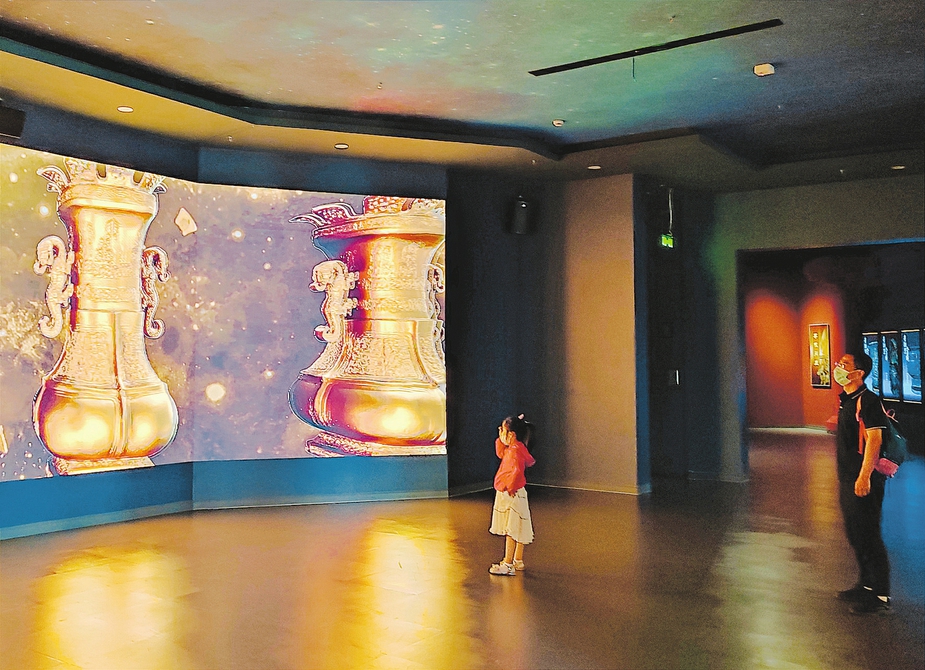 6月17日,太原市博物館數字青銅館,展廳通過借助數字化多媒體技術,讓觀眾沉浸式體驗中國青銅文化藝術之美。(記者王瑞瑞攝)
