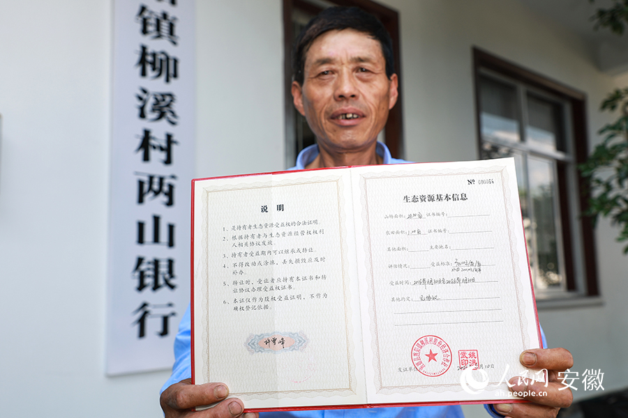 村民許雪峰展示《生態資源受益權證》。人民網 張俊攝