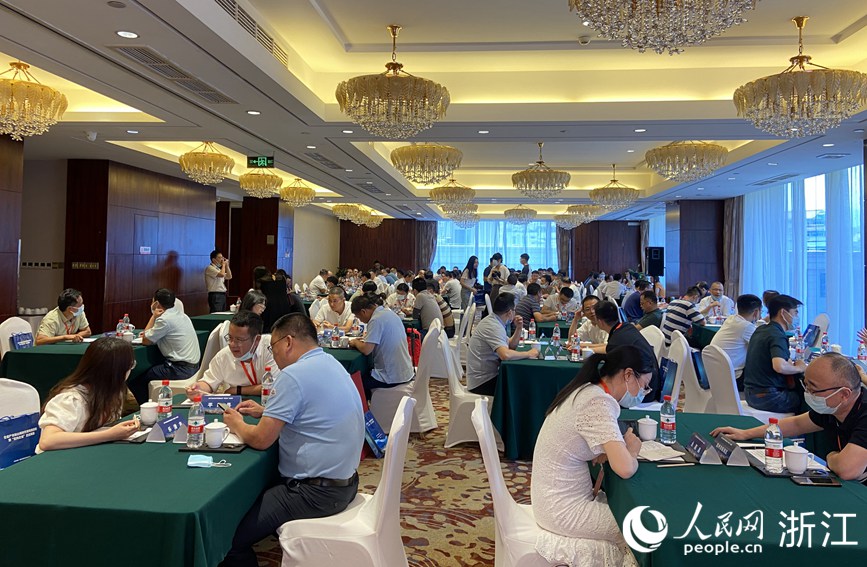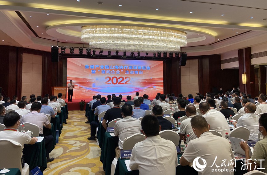 全省產(chǎn)業(yè)鏈山海協(xié)作現(xiàn)場(chǎng)推進(jìn)會(huì)暨“意向企業(yè)”走進(jìn)青田活動(dòng)現(xiàn)場(chǎng)。人民網(wǎng) 方彭依夢(mèng)攝