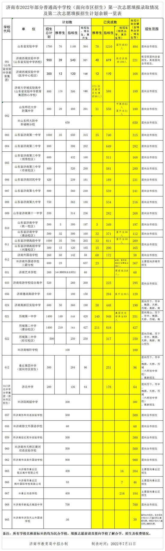 濟南市高中階段學校招錄第二批次志愿填報說明、各校剩余招生計劃(不含萊蕪區(qū)、鋼城區(qū))