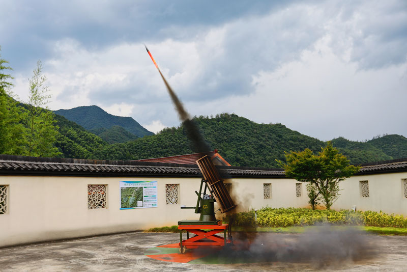 7月17日上午11時,湖州市長興縣氣象局抓住局部對流云團發展、有弱降水過程的特點,在長興合溪水庫附近,發射了8枚BL-1型人工增雨火箭,直接把催化劑送入云層,打響了今年浙江全省性大規模抗旱增雨作業第一炮。當天12時30分,湖州市安吉縣氣象局也發射了8枚火箭彈,當地不久后便有雨露從天而降。