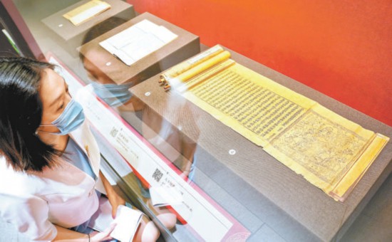 昨天,在“冊府擷珍——民族文化宮典藏古籍精品展”現場,觀眾仔細欣賞展品。本報記者 方非攝