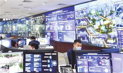 走進這座智慧城市的“中樞”──生態(tài)城“城市大腦”運營中心,只見以深藍(lán)為主色調(diào)的超大液晶屏鋪滿整面墻,科技感拉滿。屏幕上的數(shù)據(jù)和信息背后,是建設(shè)、環(huán)境、醫(yī)療、應(yīng)急等10多個領(lǐng)域的實時運行情況,涉及30余個系統(tǒng)、400余項指標(biāo)。工作人員目不轉(zhuǎn)睛地監(jiān)測、記錄、反饋,在做到心中有“數(shù)”的同時,也將城市管理運營模式從“被動處置”轉(zhuǎn)為“主動干預(yù)”。