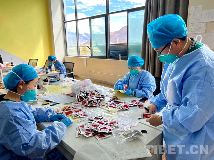 圖為拉薩市第二座方艙醫院藥劑科醫護人員們為新入駐的患者準備藏藥 攝影:次仁卓瑪