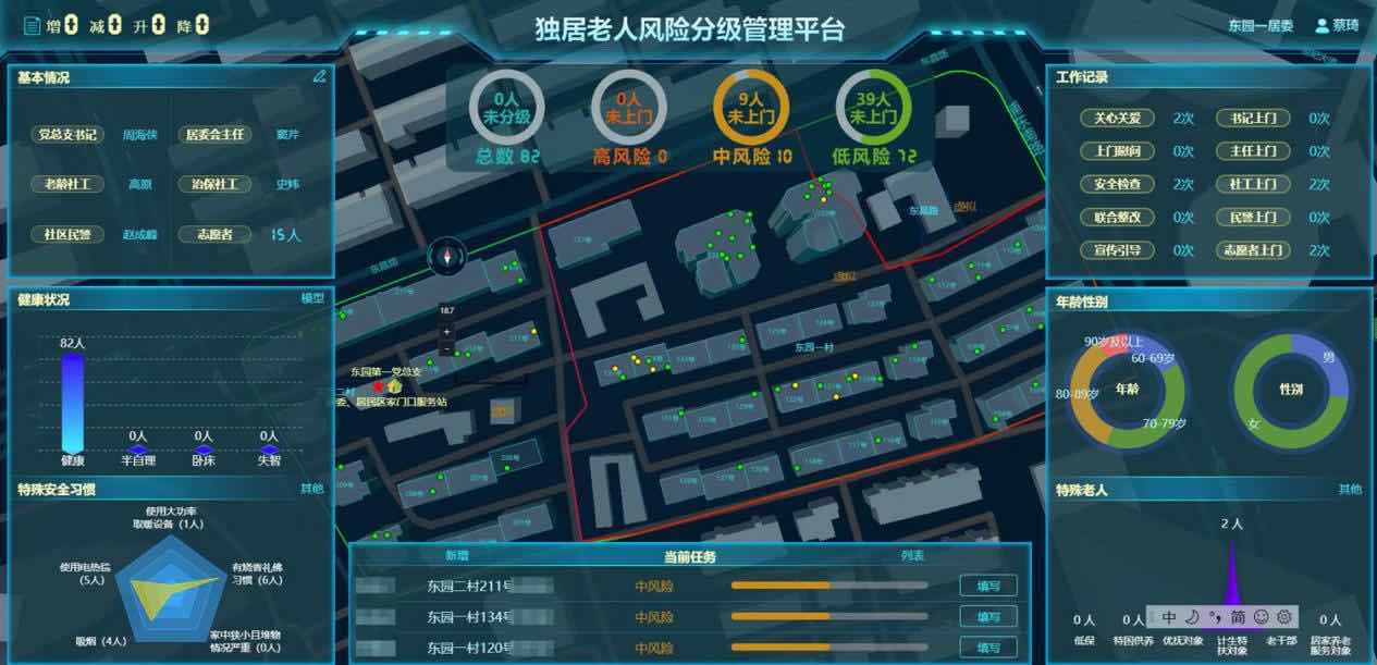 東一居民區有個獨居老人風險分級管理平臺?!昂軐嵱茫 敝芎b提到,有些長者對“獨居老人”這個稱呼很排斥,也不愿意居委過多關注,“我們做了個模型,輸入各類老人信息,讓老人在無感狀態下受到關心。”