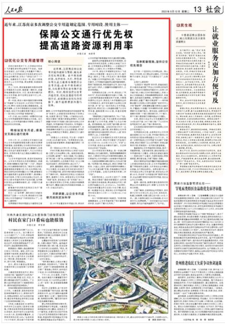 人民日報|江蘇南京:保障公交通行優先權 提高道路資源利用率