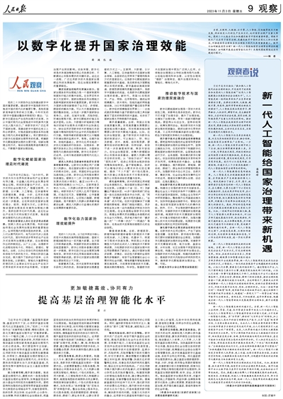 人民日報整版探討數字化如何賦能國家治理