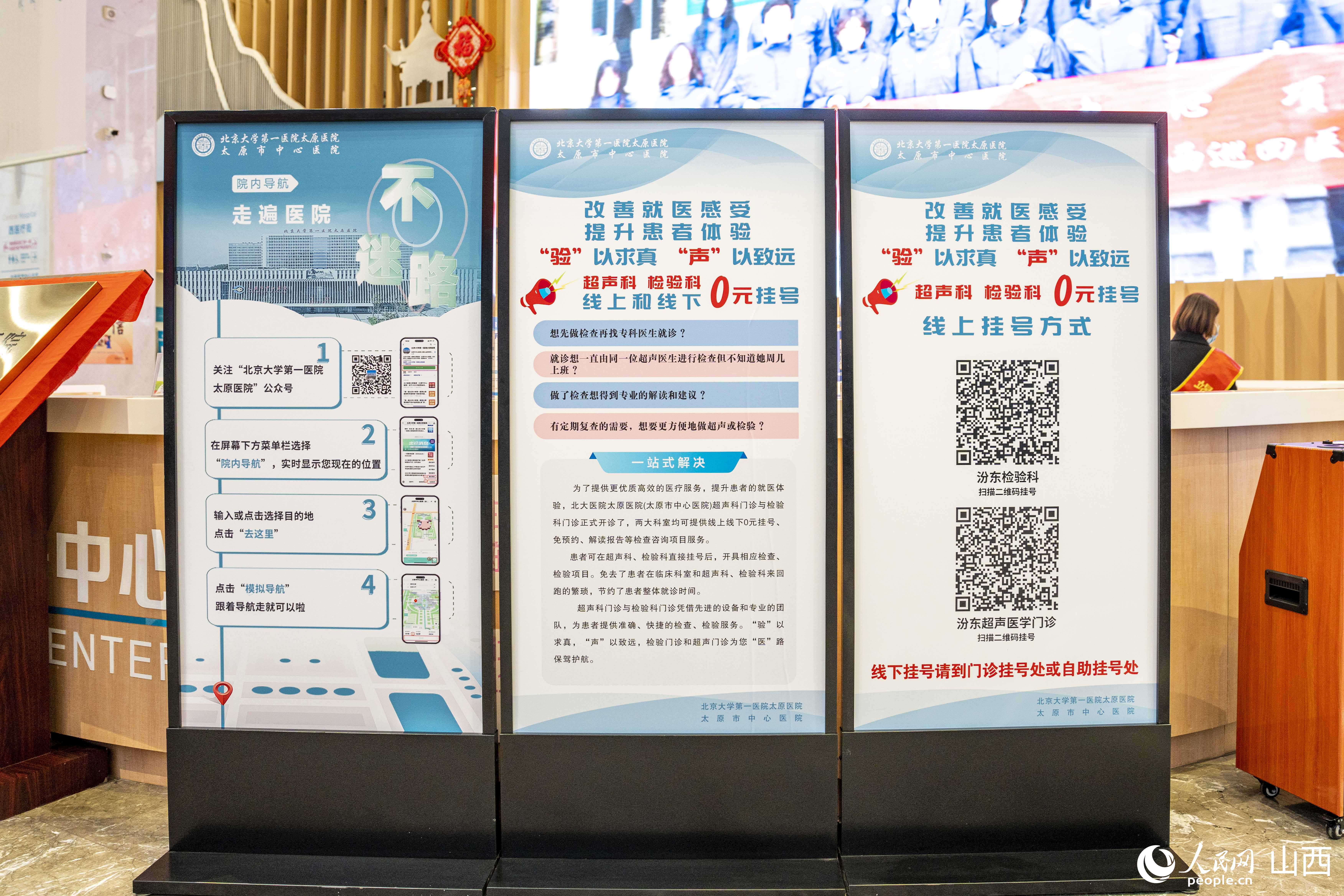 北大醫院太原醫院門診大廳設立相關內容展板。人民網 盧鵬宇攝