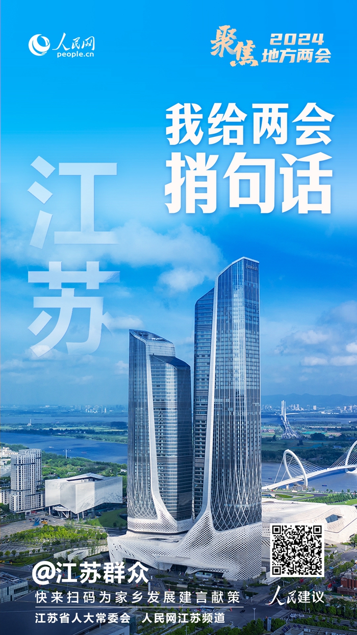 2024年江蘇省兩會即將召開。為廣泛匯集社會各界關于經濟發展、民生保障、教育人才、科技創新、農業農村現代化等方面的好建議,即日起,人民網聯合江蘇省人大常委會推出“我給江蘇兩會捎句話”大型建言征集活動,廣大網友可通過人民網“領導留言板”小程序、“人民網+”客戶端等渠道,為家鄉發展積極建言獻策。