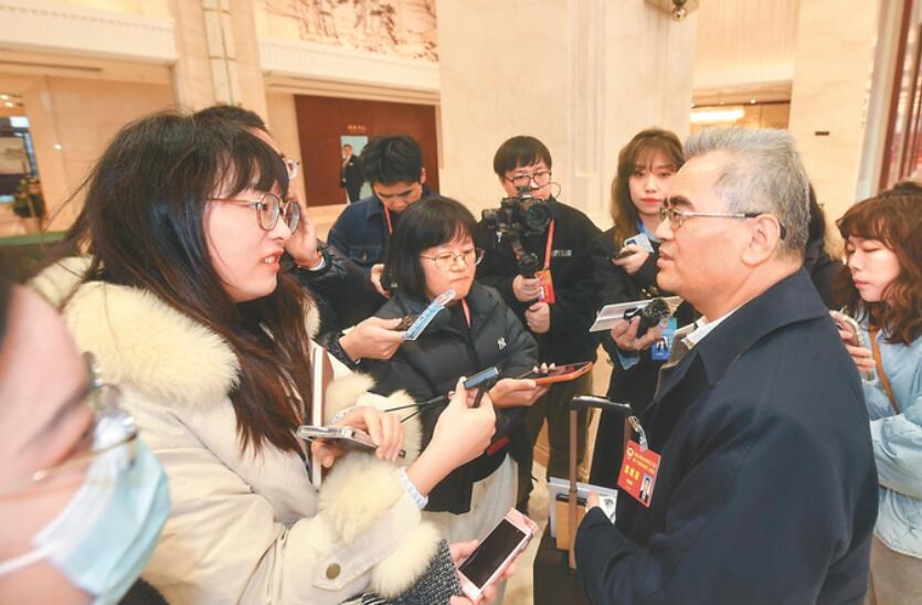 委員在住地華山飯店接受記者采訪。 本報記者 王詩宇 趙亞玲 邵丹 攝