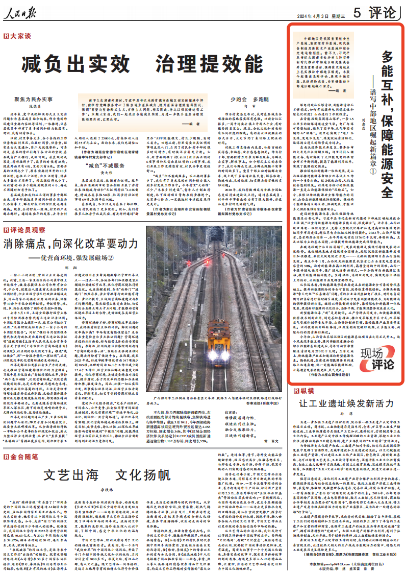 建設新型能源體系,做優做強傳統能源是必要之舉。習近平總書記在新時代推動中部地區崛起座談會上強調,“注重傳統能源與新能源多能互補、深度融合”。近年來,山西以坑口煤電一體化為重點,支持大型現代化煤礦和先進高效環保煤電機組同步布局建設,超臨界電力機組比例持續提升。2023年,山西產煤增量、總量均居全國第一,全年外送電量達1576億千瓦時,再創新高。立足以煤為主的基本國情,必須提升傳統能源兜底保障能力。