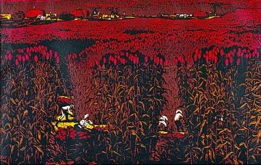 晁楣,1931年出生于山東省菏澤市,1958年跟隨十萬建設(shè)大軍來到北大荒。由于長期從事美術(shù)宣傳工作,到達墾區(qū)后,他開始在《北大荒畫報》和《北大荒文藝》兩刊編輯部工作,并利用閑暇時光進行版畫創(chuàng)作。他的《麥海》《第一道腳印》等版畫作品在1960年于北京舉辦的“北大荒美術(shù)作品展覽會”上受到廣泛關(guān)注,“北大荒版畫”這一概念逐漸為人們所熟知,晁楣成為該版畫流派的創(chuàng)作先驅(qū)之一。