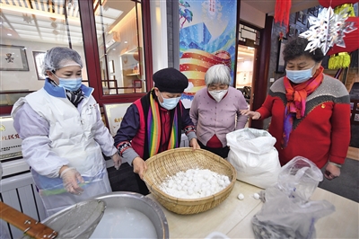 為解決市民扎堆排隊,便宜坊集團今年鋪設(shè)了約100個錦芳元宵銷售網(wǎng)點,并首次進駐物美超市。京味兒十足的護國寺小吃總店繼續(xù)堅持“現(xiàn)搖現(xiàn)售”,不但推出了巧克力、黑芝麻等傳統(tǒng)口味元宵,還上新了流心榴蓮餡,增加電話預(yù)訂、線上購買業(yè)務(wù)。老字號又一順專門用火龍果調(diào)色,制作出巧克力餡、玫瑰紅的限量版元宵。峨嵋酒家推出了用蔬菜汁、水果汁調(diào)出的“五彩”湯圓。華天集團微信公眾號推出“猜燈謎”互動小游戲,猜出謎底可獲得不同面值會員商城優(yōu)惠券。