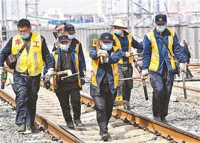3月15日上午10點(diǎn)半,豐臺(tái)站東咽喉處,700余名建設(shè)者上線施工。這一處施工可以說是整個(gè)系統(tǒng)更換的前奏。此前在2020年8月30日,京滬線撥接進(jìn)入豐臺(tái)站過渡線并開始穿站而過。3月15日,施工人員把位于過渡線上的京滬線撥接至正式線位,該站普速車場的11臺(tái)20條線路就全部具備了開通條件。這也是豐臺(tái)站在正式開通運(yùn)行前的最后一次撥線施工。