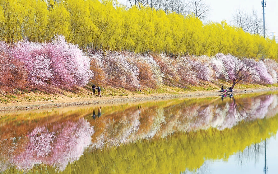 清明假期,在朝陽區壩河兩岸,翠柳拂堤,岸邊綻放的花朵如彩云般鋪陳開來,映在碧波中,描繪出一幅春的畫卷。市民們踏青賞花,享受愜意的假日時光。北京日報記者方非攝