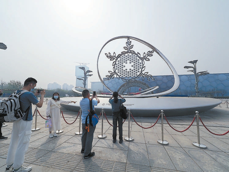 奧林匹克公園中心區近日恢復開放,吸引大批市民游客特意來到冬奧會火炬臺前拍照留念。園內的冬奧官方特許商品零售店也已恢復營業,不少市民前來選購冬奧紀念品。杜建坡 攝