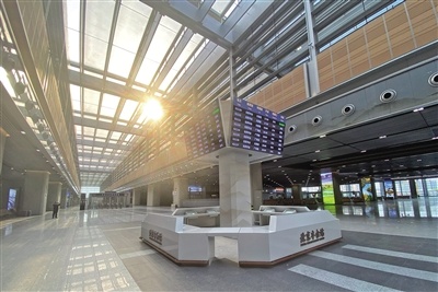 北京西南三環(huán)外,歷經(jīng)三年半的建設(shè),全新的豐臺火車站終于落成。這座鐵路樞紐的亮點(diǎn)頗多,587米長的中央光庭,不僅改善了采光通風(fēng)問題,還將候車廳用自然光分成南北兩部分;建筑風(fēng)格雖然簡潔,但細(xì)節(jié)處處蘊(yùn)含著北京元素。