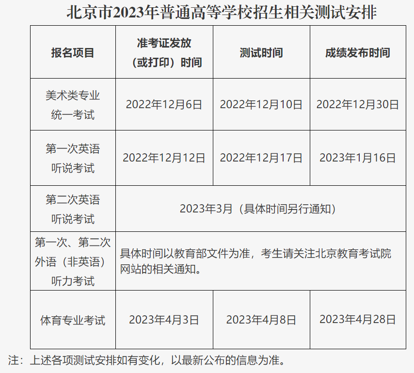 ?。ㄋ模?023年普通高等學校招生美術類專業統一考試、體育專業考試、英語聽說考試、外語(非英語)聽力考試報名與高考報名同期進行,符合條件擬報名參加相關測試的考生須選報相關項目并繳費。