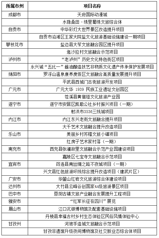 2022年度四川省文化旅游融合示范項目擬支持名單如下:
