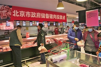 10月24日,物美超市大興黃村店,市民在“北京市政府儲(chǔ)備豬肉投放點(diǎn)”專柜選購(gòu)商品。 新京報(bào)記者 鄭新洽 攝