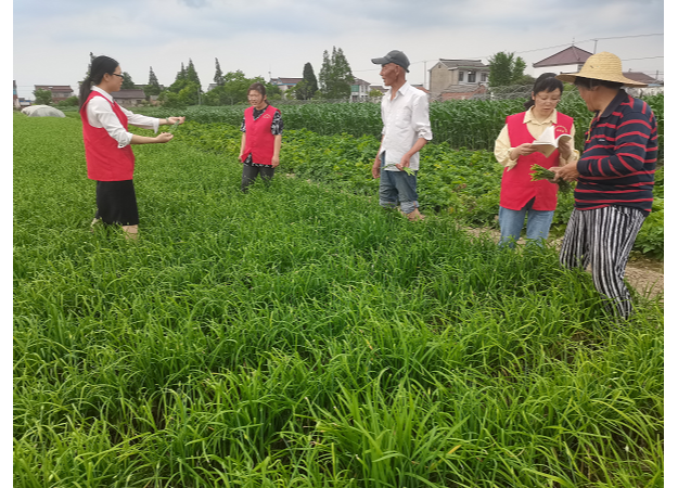 農技志愿者在田頭宣傳韭菜無公害種植技術(央廣網發 通訊員供圖)