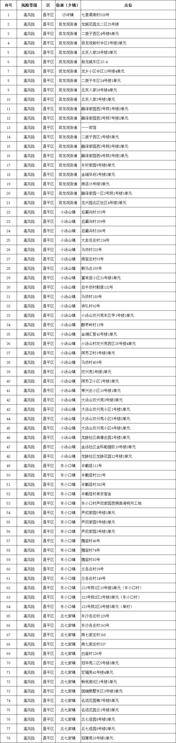 截至4日24時,北京昌平有高風險區222個,名單公布