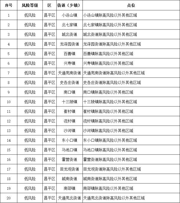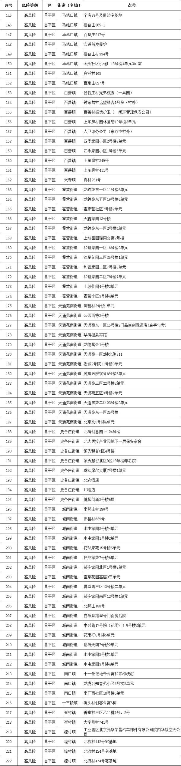 據北京市昌平區疾病預防控制中心通報,截至12月4日24 時,昌平區共有高風險區222個,低風險區20個,詳情如下:
