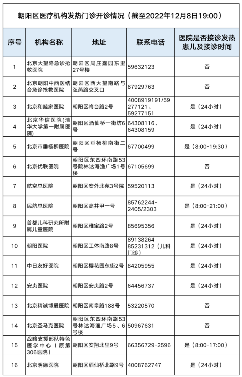最新!朝陽區開設發熱門診醫療機構名單公布