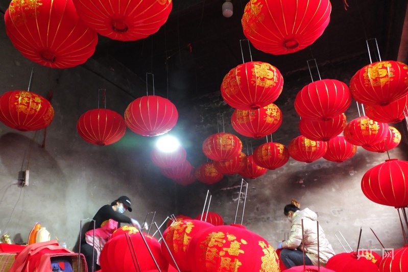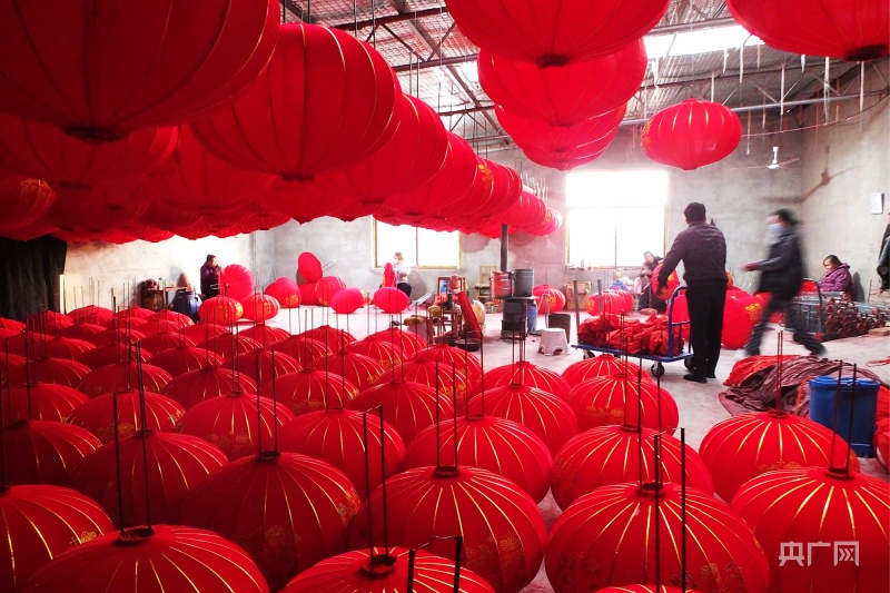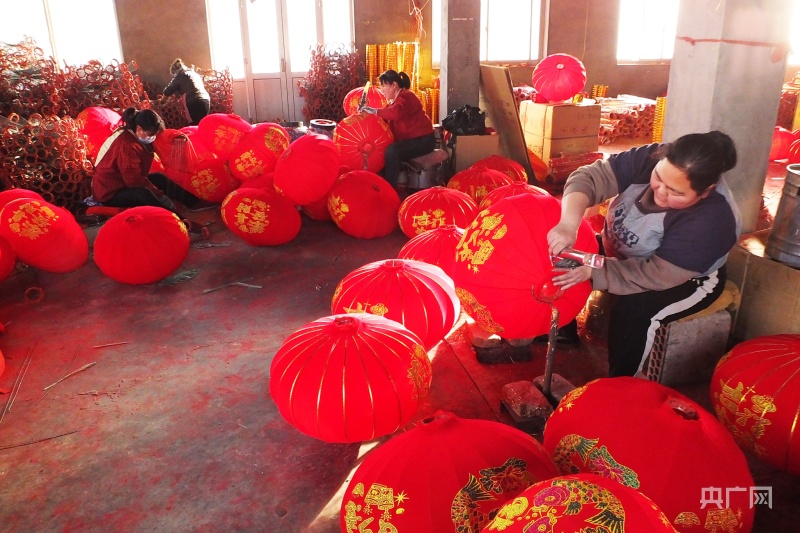 作坊內,滿屋燈籠紅(央廣網發 高新生 攝)