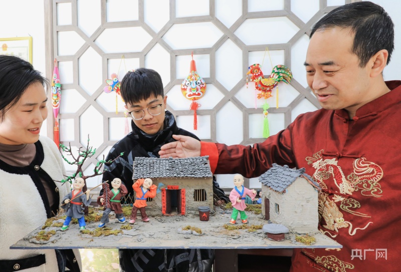 安秋平向游客介紹面塑作品《過大年》(央廣網發 吳庭棟 攝)