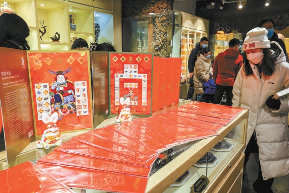 今年新推出的故宮文創郵票等琳瑯滿目的兔年文創產品上架。本報記者 鄧偉攝