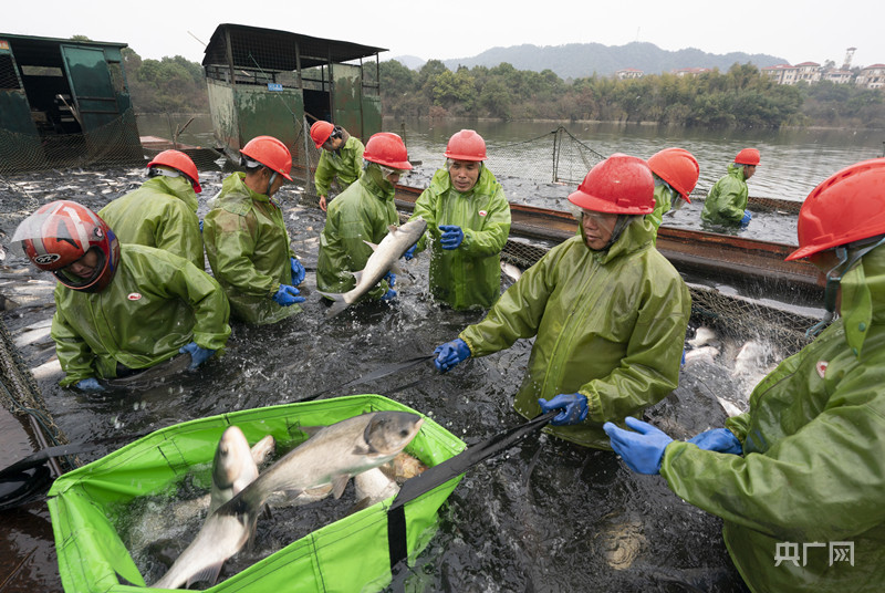 央廣網新余1月3日消息(記者胡斐)2023年1月2日,江西省新余市仙女湖巨網冬捕現場,漁民們進行新年冬捕作業,呈現一派魚躍歡騰的豐收景象。