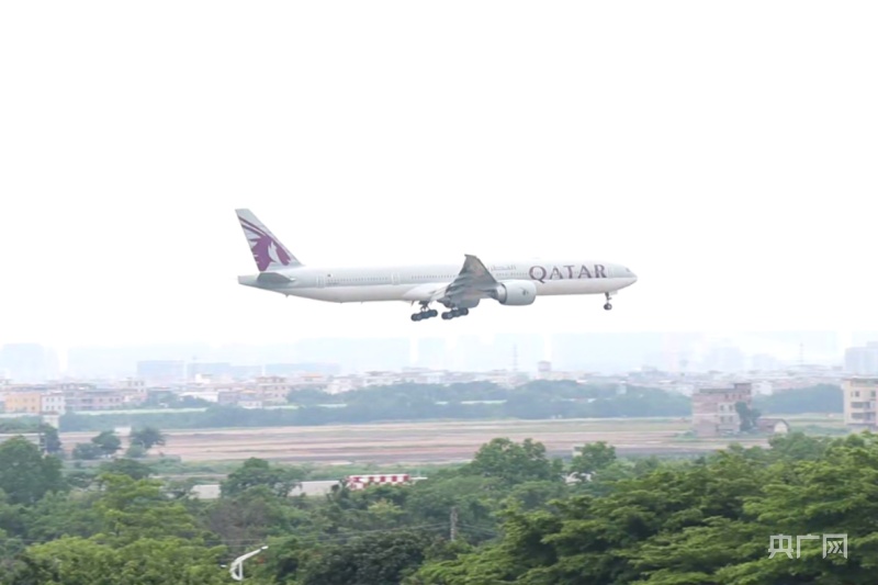 一國際航班降落廣州白云國際機場(央廣網記者 黃璐璐 攝)