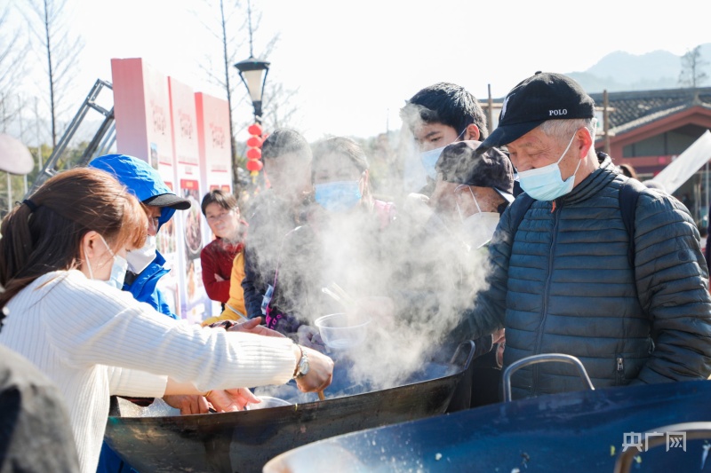 市民現場品嘗熱氣騰騰的大鍋燉魚(央廣網發 活動主辦方供圖)