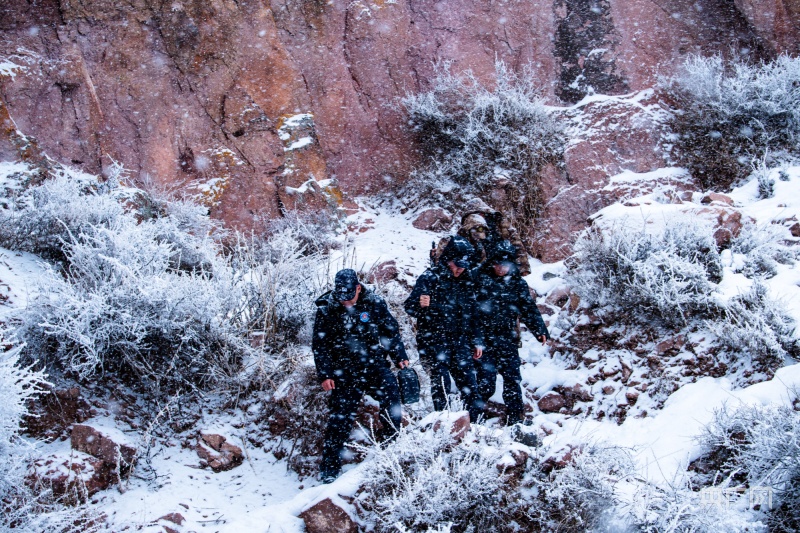 新疆伊犁邊境管理支隊洪海溝邊境警務站民警冒雪深入邊境地區巡邏(央廣網發 郭瑋 攝)