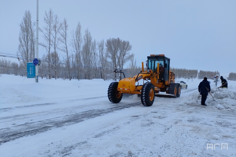 新疆阿勒泰地區消防救援支隊消防指戰員正在清理路上的積雪(央廣網發 周繼成 攝)
