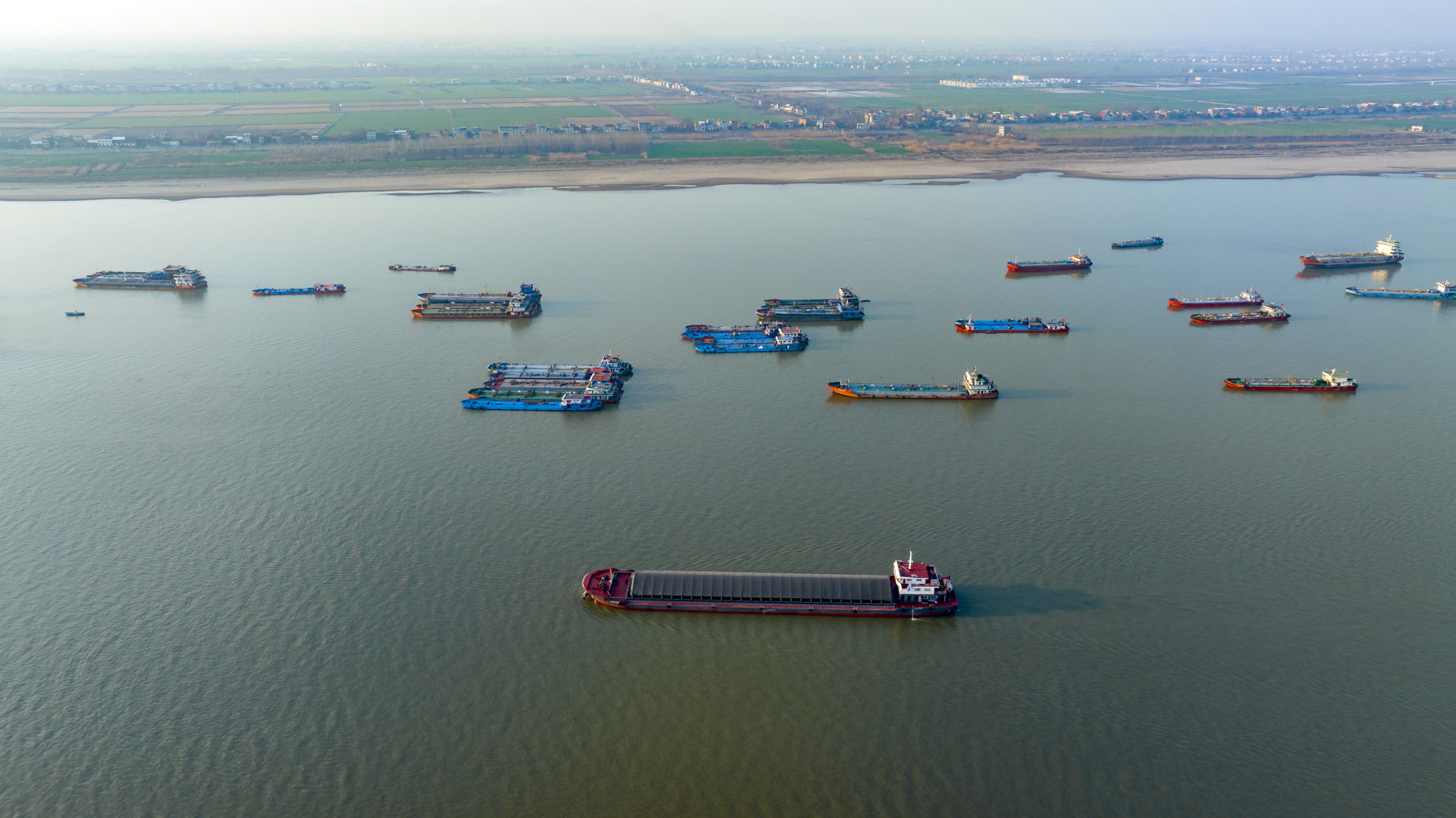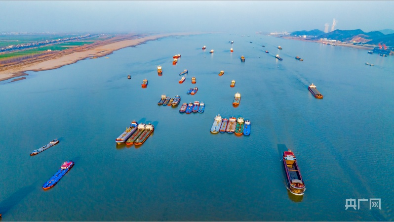長江航道江西省九江市湖口縣水域船舶往來穿梭,水運一派繁忙(央廣網(wǎng)發(fā) 張玉 攝)