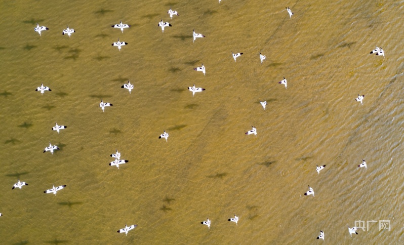 央廣網(wǎng)新余1月11日消息(記者鄧玉玲)2023年1月10日,江西省新余市渝水區(qū)水北鎮(zhèn)黃坑村水域,大量反嘴鷸、黑翅長(zhǎng)腳鷸、野鴨等候鳥或在空中盤旋飛舞,或在水中嬉戲覓食,構(gòu)成冬季美麗的生態(tài)畫卷。