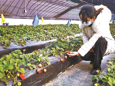走進位于平谷區峪口鎮南營村的設施農業智慧云服務系統產業化“博士”農場,日光溫室里春意濃濃,空氣中清甜的香氣撲鼻而來。三九天的北京,這里一派生機盎然。一月正是草莓豐收的季節,南營村“博士”農場的草莓也迎來了豐收季。與其他地區的草莓種植不同,依托于中國農業大學智慧農業研究中心科研團隊建設的“博士”農場,顆顆草莓都被打上了智慧的印記。