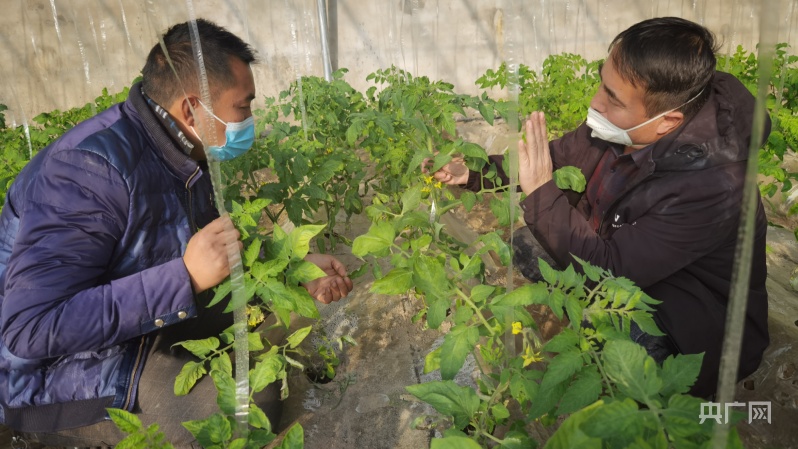 技術(shù)人員指導(dǎo)農(nóng)戶種植蔬菜(央廣網(wǎng)發(fā) 高月 攝)