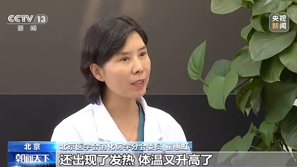 北京醫(yī)學會消化病學分會委員 翟惠虹:到了夏天的時候,如果當您吃完了食物之后,莫名其妙地就開始嘔吐,伴隨著上廁所的次數增加,就要警惕了,有可能就是腸道感染了,最好及時到醫(yī)院去。那么如果在這個上吐下瀉的過程中,還出現了發(fā)熱、體溫又升高了,不管這個體溫是低熱還是高熱,我建議您一定要到醫(yī)院接受相應的診斷和治療。
