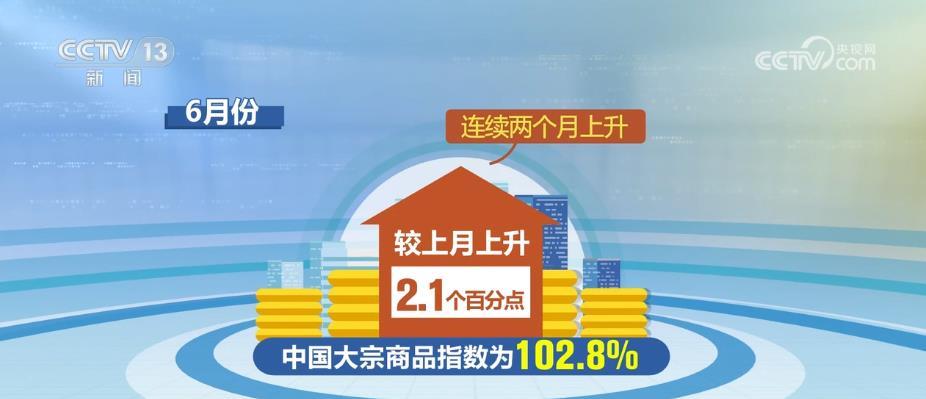 6月份,中國大宗商品指數為102.8%,較上月上升2.1個百分點,連續兩個月上升。