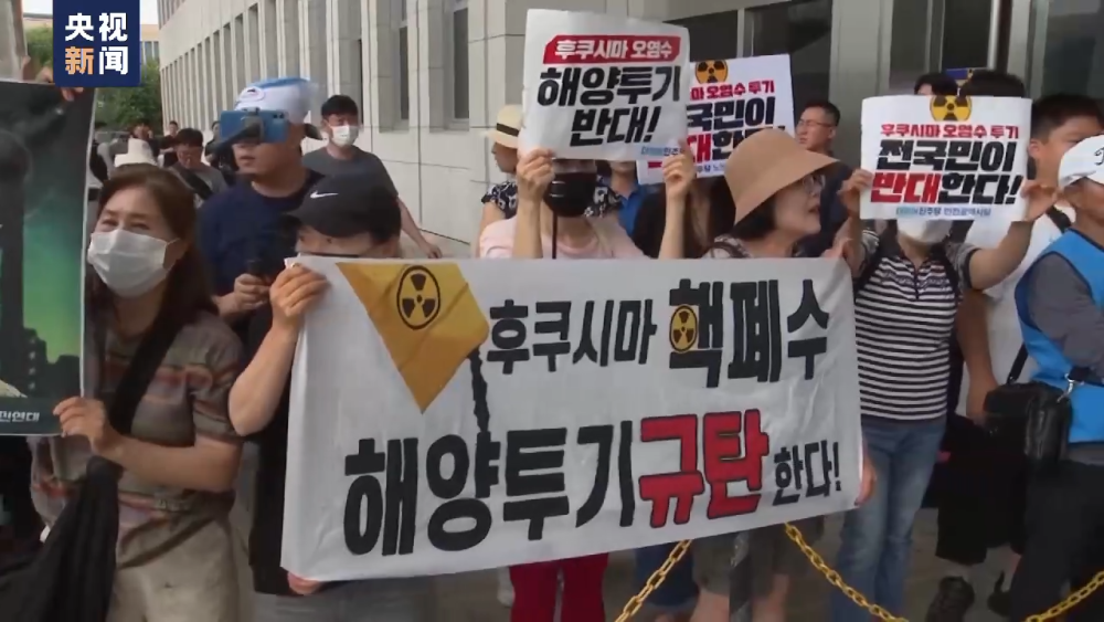當天,韓國民眾在國會前舉行集會,反對日本政府強推核污染水排海計劃,認為國際原子能機構評估報告不可信。