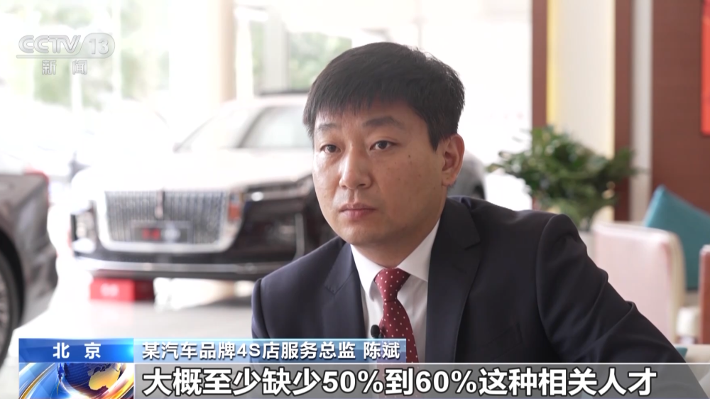 某汽車品牌4S店服務總監 陳斌:目前的缺口,從我們店端來講,大概至少缺50%到60%這種相關人才。