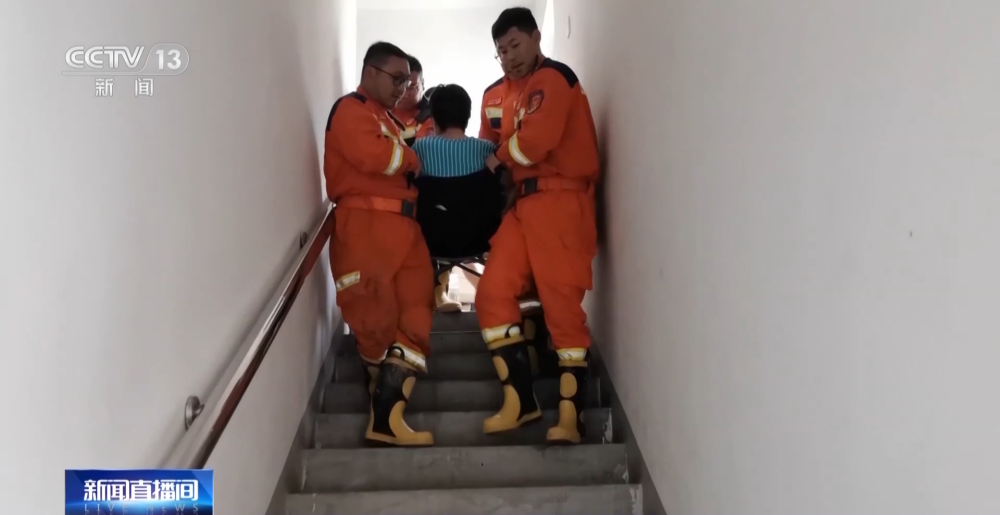 除了緊張的排澇作業(yè),救援隊注意到,由于斷水?dāng)嚯姅嗑W(wǎng),在這里居住的群眾也會遇到各種難題。6日上午,一名居民前來求助,21層82歲的老人姚希玉困在家中好幾天,有就醫(yī)需求。但沒有電梯,很難將老人運送下來。救援隊決定,立刻走樓梯把老人運下來。
