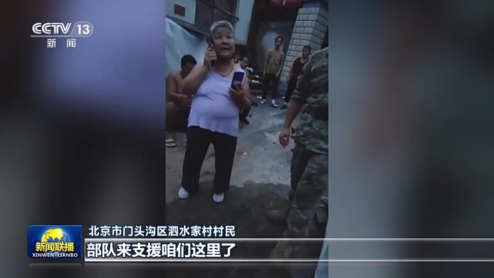 北京市門頭溝區泗水家村村民:部隊來支援咱們這里了。你別哭,你別哭,解放軍在這呢,你們就放心吧。謝謝解放軍們。