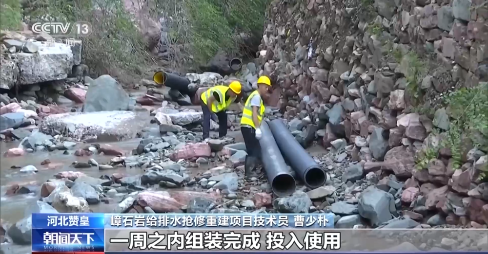 嶂石巖給排水搶修重建項目技術員 曹少樸:我們現在投入大量的工人,還有管理人員,現在是三班倒,在緊急搶修中,一周之內組裝完成,投入使用。