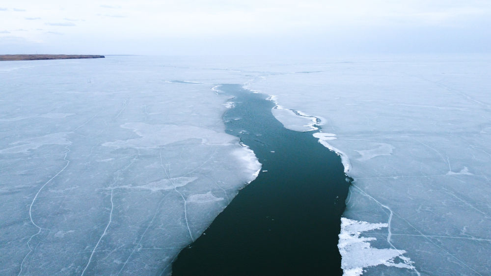 這是4月17日拍攝的呼倫湖開湖景象(無人機照片)。新華社記者 王楷焱 攝