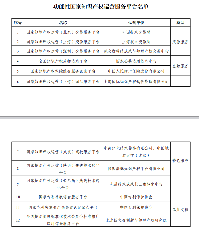 國家知識產(chǎn)權(quán)局認(rèn)定12家功能性國家知識產(chǎn)權(quán)運(yùn)營服務(wù)平臺